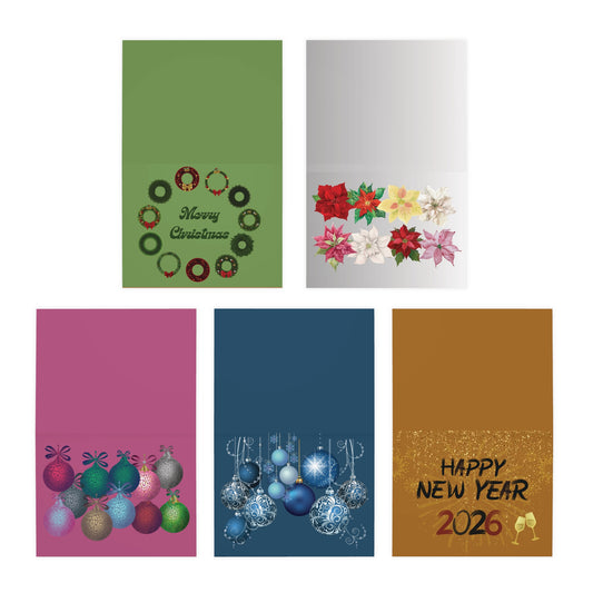 Multi-Design Christmas Greetings Cards, Colorful Ornament Christmas Card, Festive New Year Card, Poinsettia Flower Christmas Card, Festive Ornament Christmas Card, Traditional Holiday Card