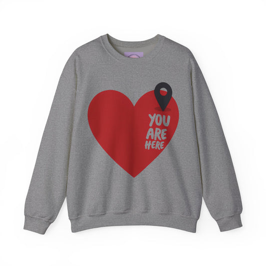 You Are Here Sweatshirt, Bold Heart Pullover, Relationship Heart Sweatshirt, Couples Sweatheart Sweatshirt, Couple Heart Graphic Sweatshirt, Minimalist Heart Sweatshirt