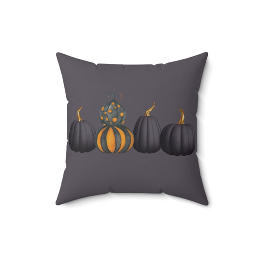 Halloween Pumpkin Throw Pillow, Black and Orange Pumpkin Accent Cushion, Spooky Fall Farmhouse Décor, Autumn Decorative Pillow; Gothic Decor