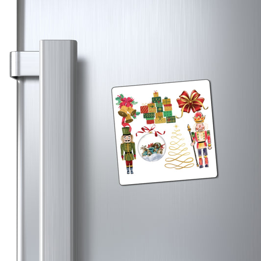 Nutcracker Fridge Magnet, Square Christmas Refrigerator Magnet, Nutcracker Christmas Magnet, Festive Holiday Magnet, Vinyl Christmas Magnets, Retro Christmas Magnet