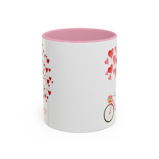 Valentine Red Accent Mug, Heart Tree Mug, Double Sided Love Mug, Watercolor Valentine Mug, Love Tree Mug, Red Hearts Valentine Mug