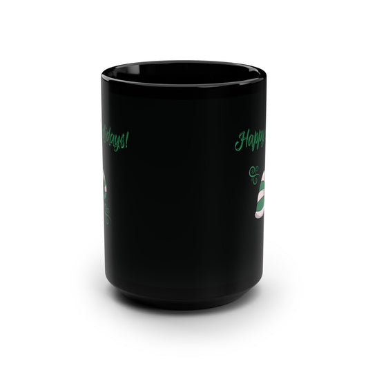 Xmas Wreath Mug, Merry Christmas Wreath Mug, Ceramic Wreath Coffee Mug, Wreath Holiday Mug, Christmas Wreath Coffee Mug, Black Wreath Mug.