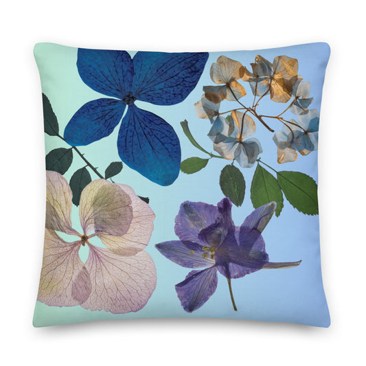 Decorated Floral Pillow, Light Blue Floral Pillow, Cottagecore Wildflower Pillow, Premium Accent Pillows, Wild Flower Designed Pillow.
