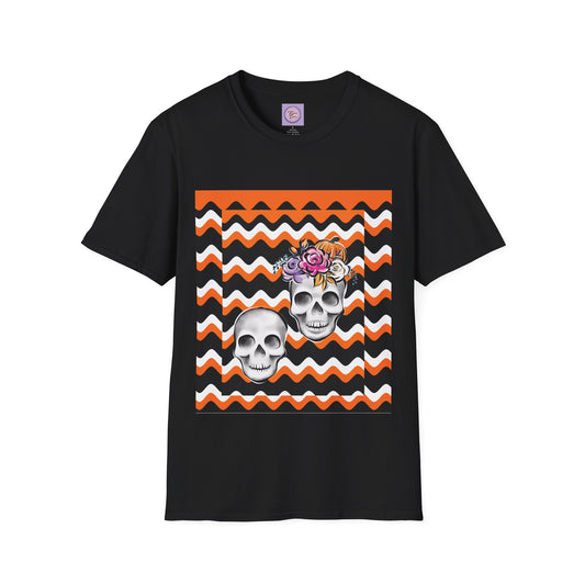 Halloween Skull Tee Shirt, Skull Tee Shirt, Spooky Skull Shirt, Zig Zag Skull Shirt, Skull Design Halloween Tee, Couple Skull Tee Shirt