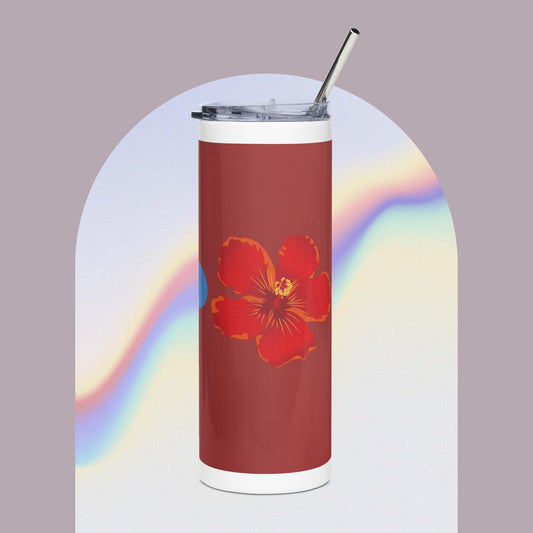 Stainless Steel Tumbler With Flower Design, Insulated Car Tumbler, Reusable Cup With Metal Straw