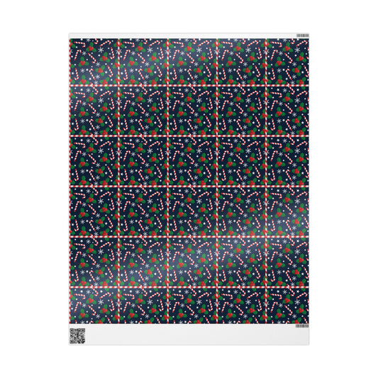 Christmas Candy Cane Wrapping Paper, Festive Holiday Gift Wrap, Holly and Snowflake Design Seasonal Christmas Paper