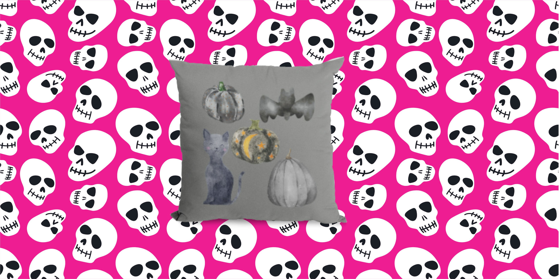 Bring a whimsical touch to your Halloween décor with this beautifully crafted decorative pillow. Featuring a soft watercolor design of classic Halloween elements like a black cat, bats, and pumpkins, this pillow is the perfect addition to your spooky season decorations.