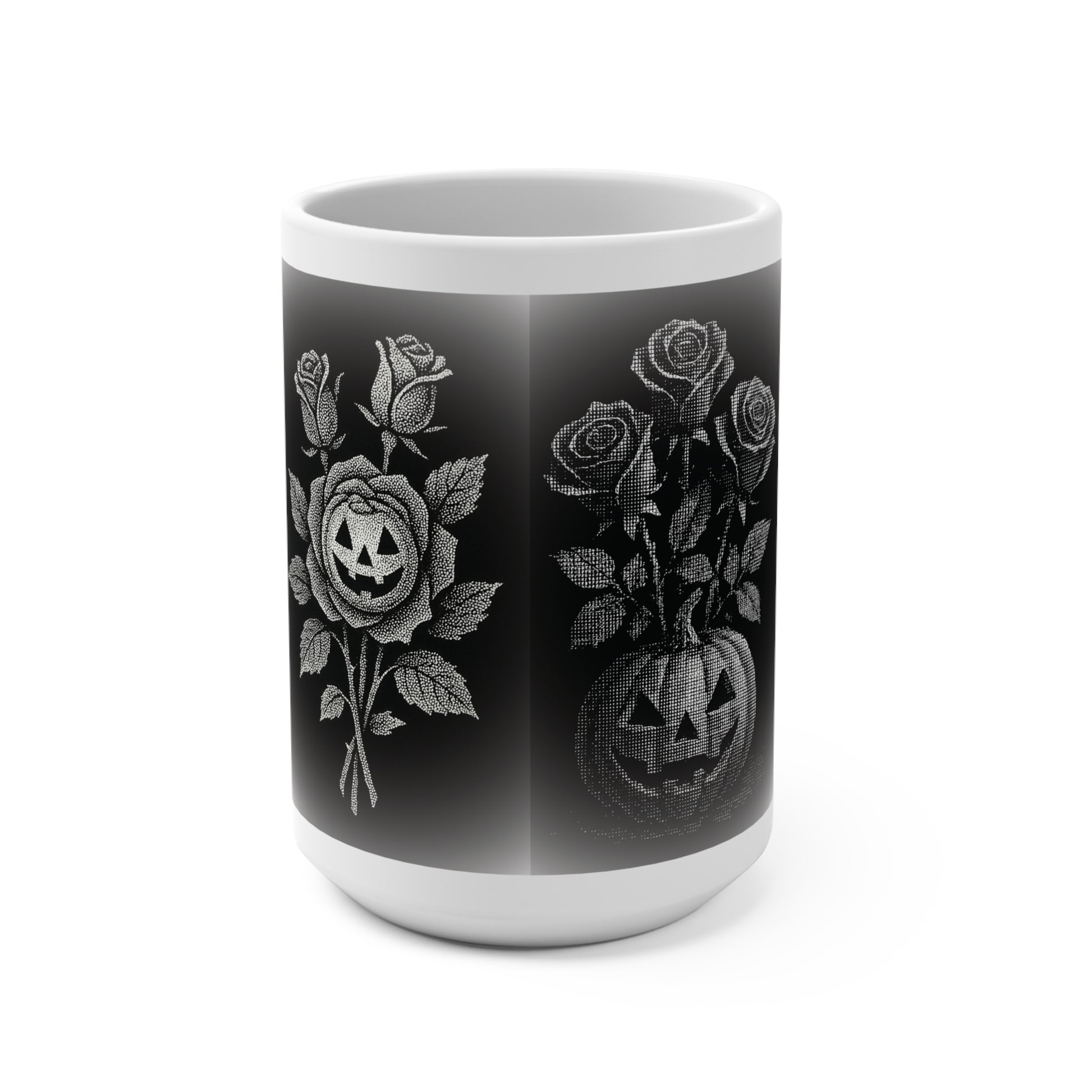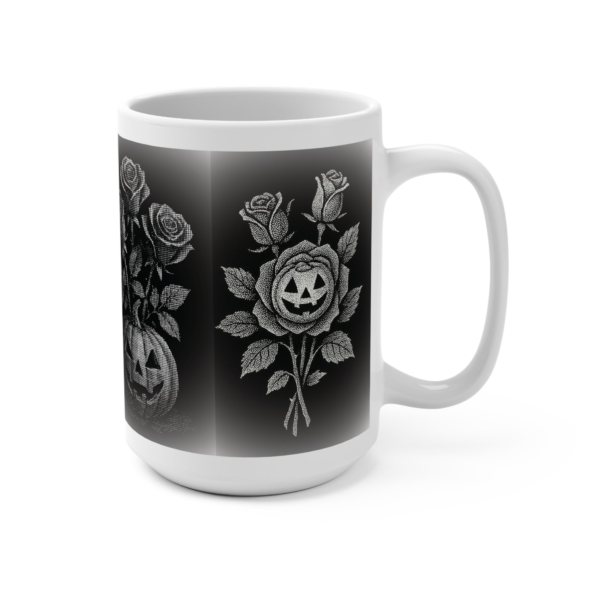 🎃 Gothic Halloween Rose Mug – Spooky Floral Pumpkin Coffee Cup