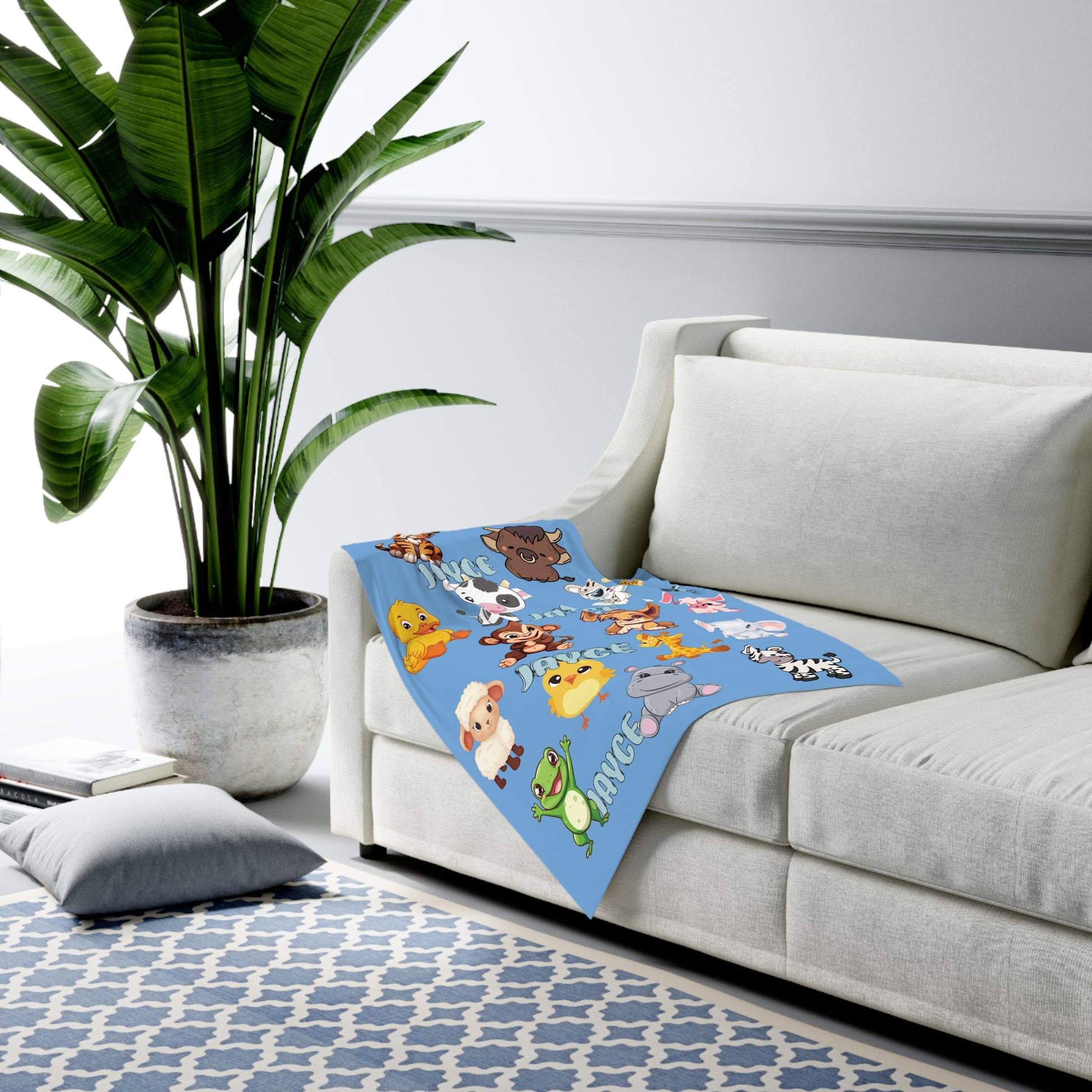 Personalized Baby Swaddle Blanket, Custom Name Safari Animal Blanket
