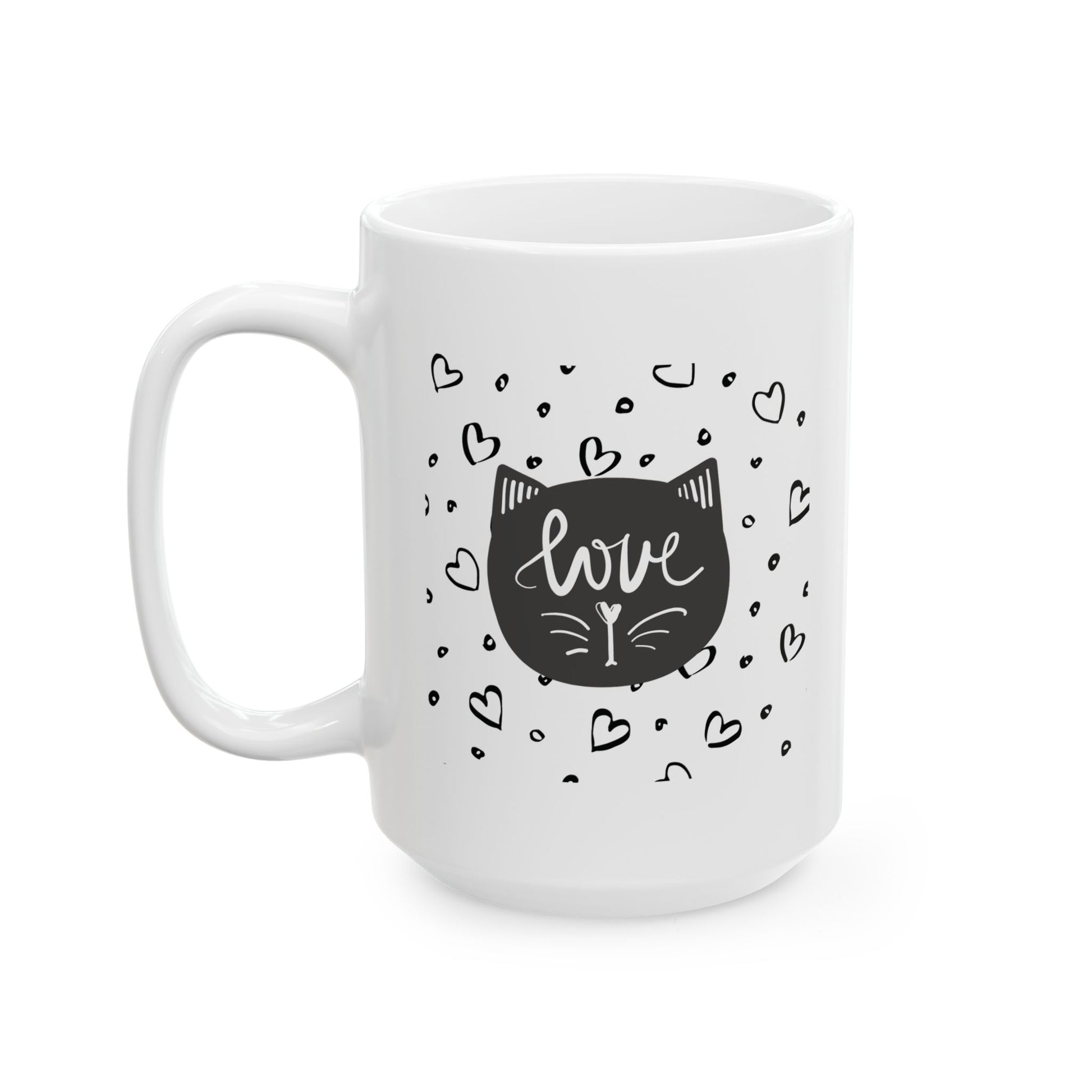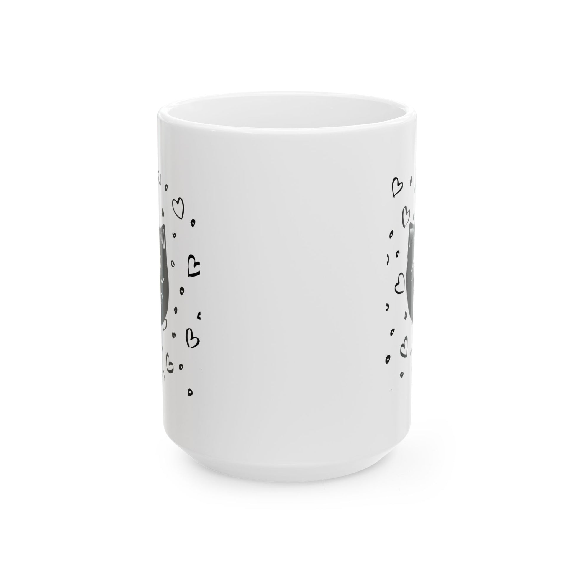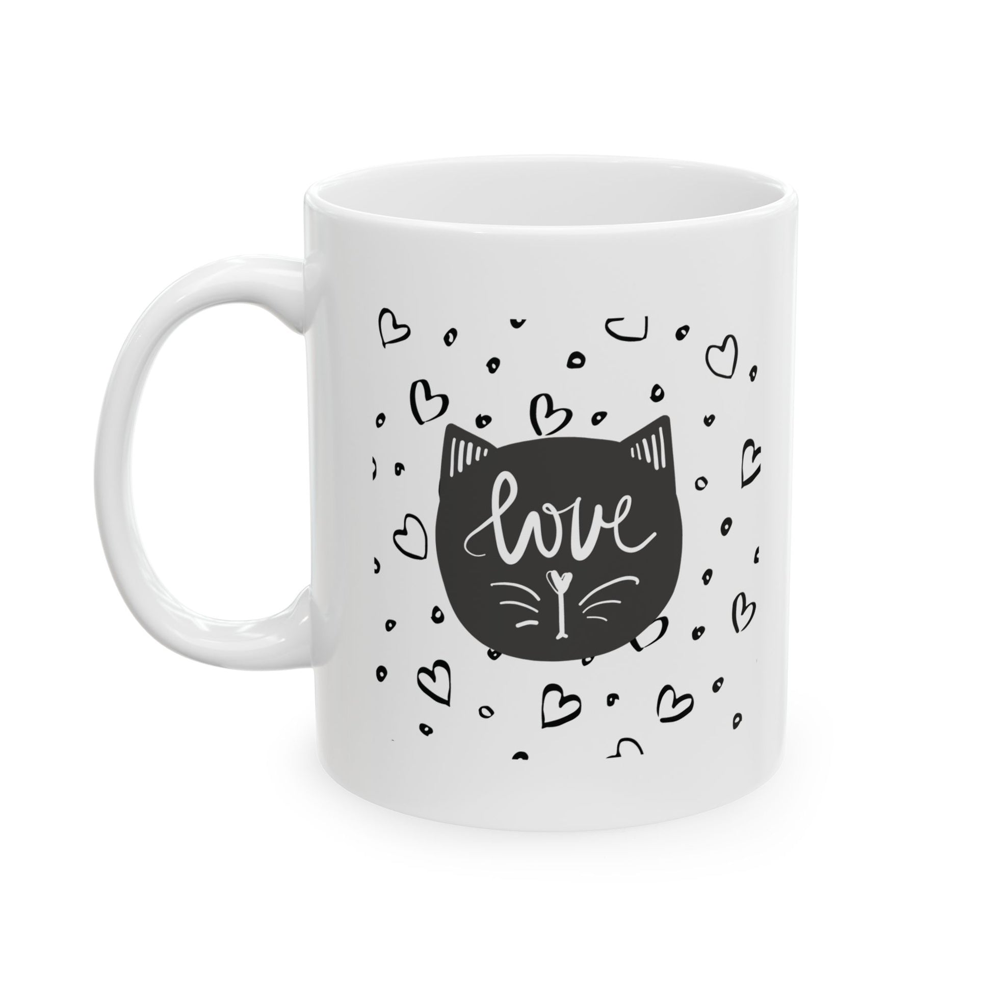 Show your love for cats with this adorable Valentine's Cat 11oz. Mug. It's a big show off. Displayed on both sides is a purr-fect picture of a feline surrounded by hearts. Enjoy your beverages in this specially designed, lead free, microwaveable, and dishwasher safe mug.