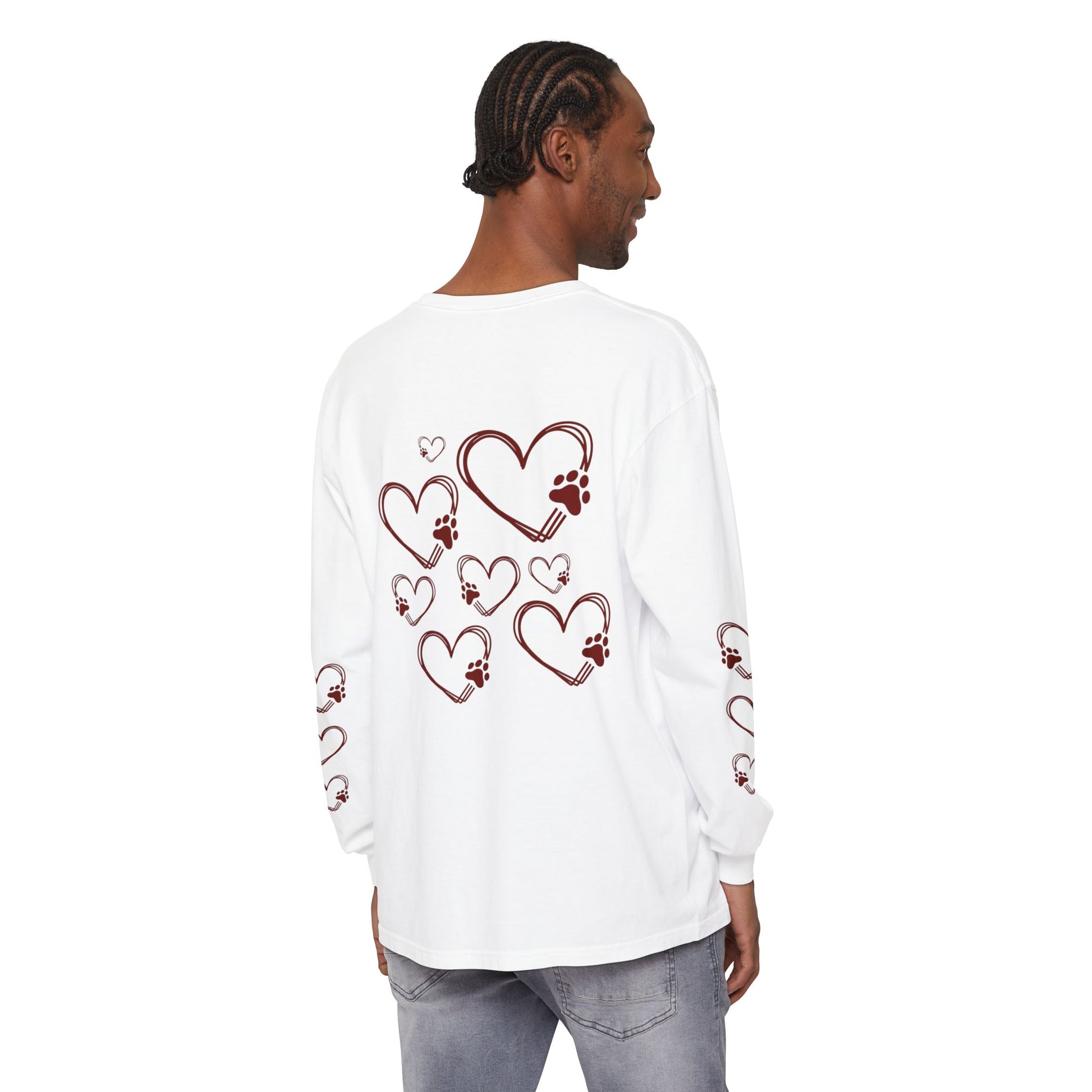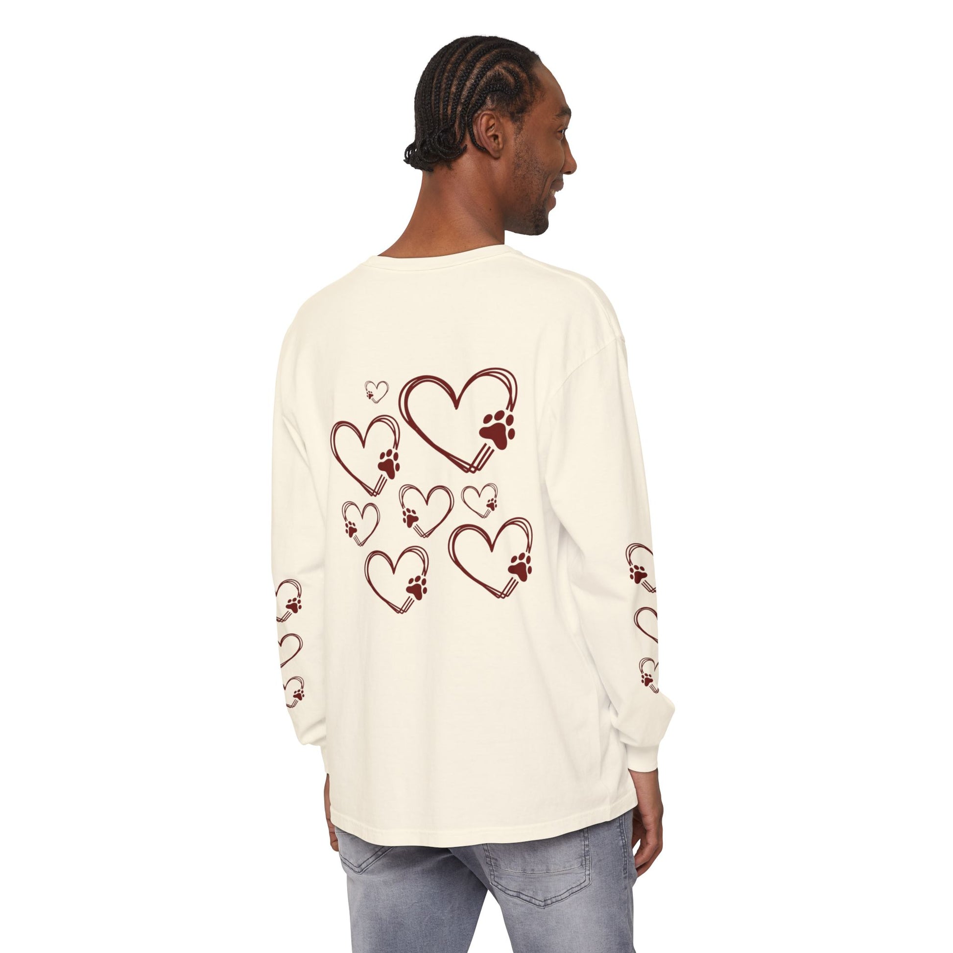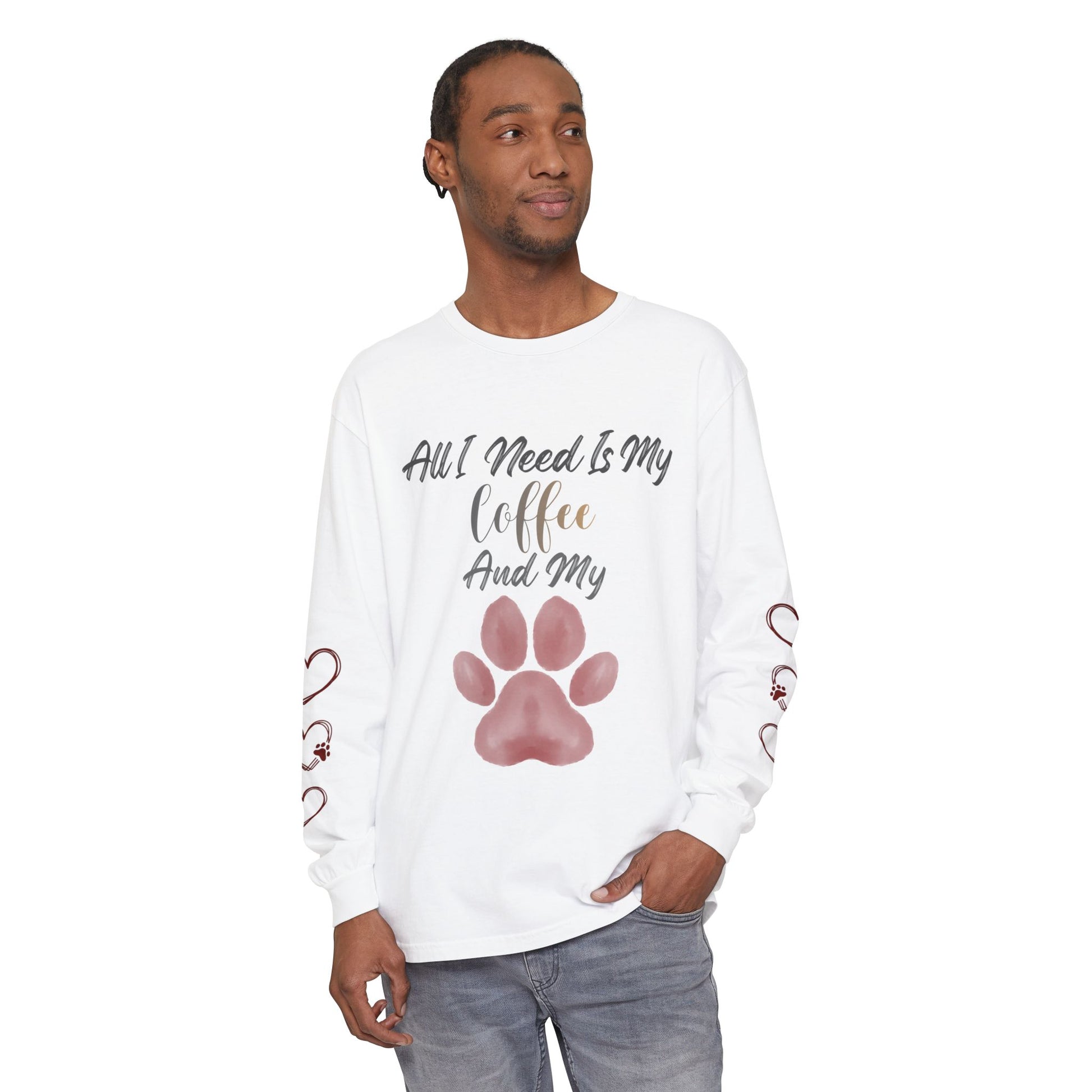 This long-sleeve shirt speaks to easy mornings with a mug in hand and a loyal pup at your feet. Soft, garment-dyed cotton wears in like a favorite sweatshirt, its muted tones and heart-and-coffee dog motif feel like a quiet nod to the small rituals that make home feel like home. The classic fit and thoughtful construction—ribbed cuffs, taped neck and shoulders, and double-stitched hems—mean it moves with you on cool walks, slow café mornings, or evenings curled up on the couch. It’s made for adults who count coffee breaks and dog cuddles as little celebrations of everyday life.