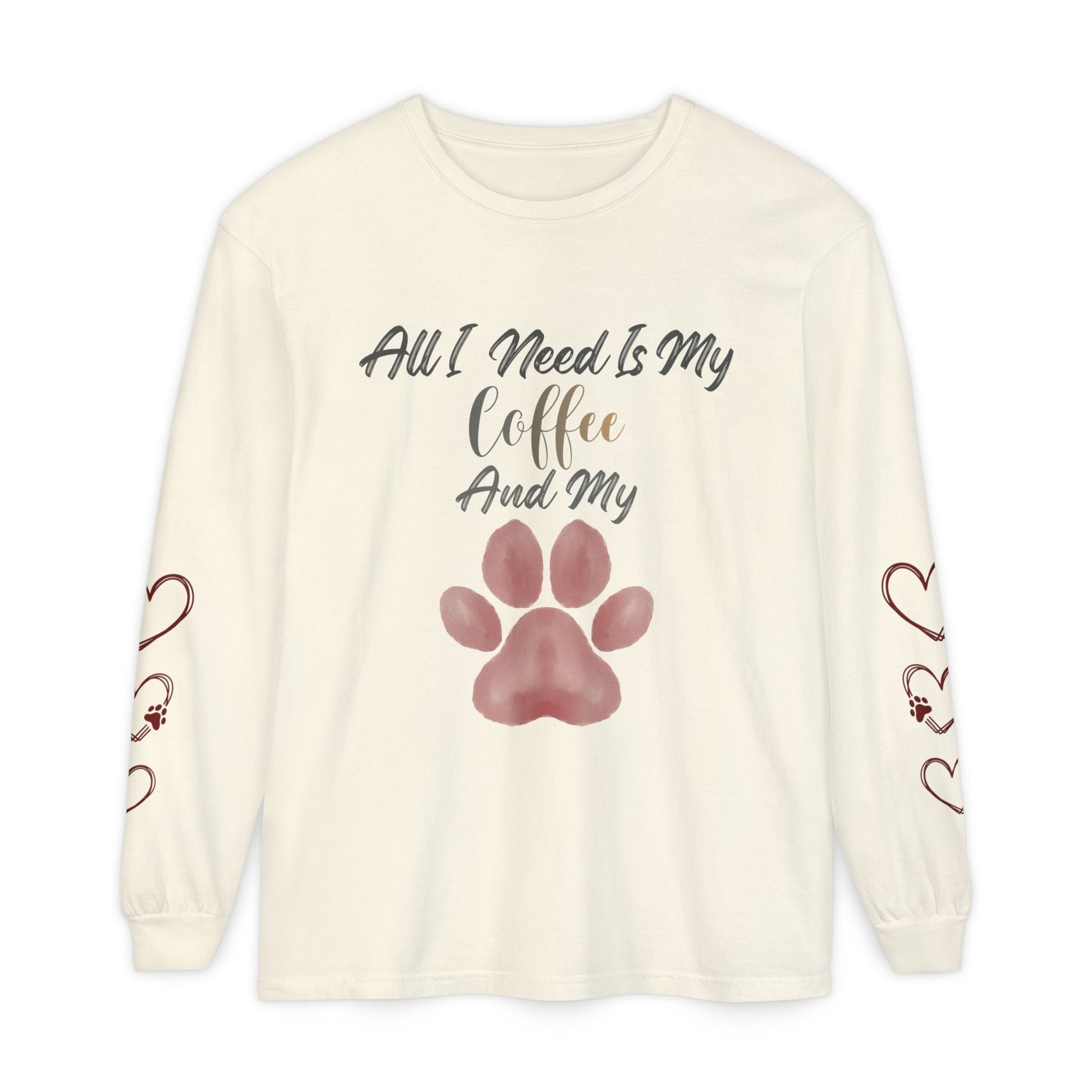 Coffee & Dog Lover Long Sleeve T-Shirt — 'Sweater Heart' Pet Mom Shirt