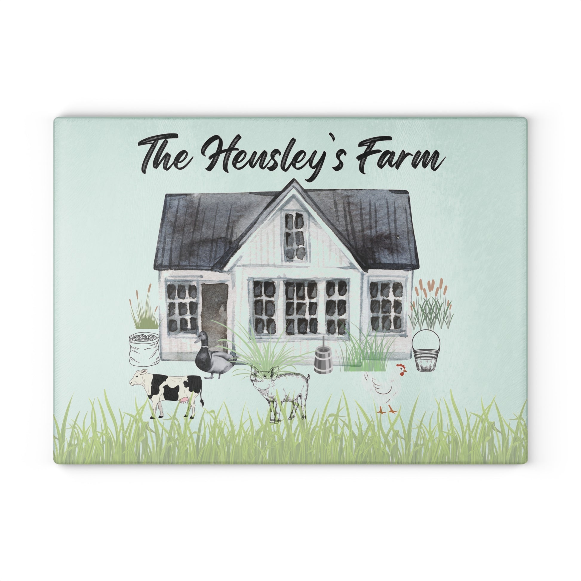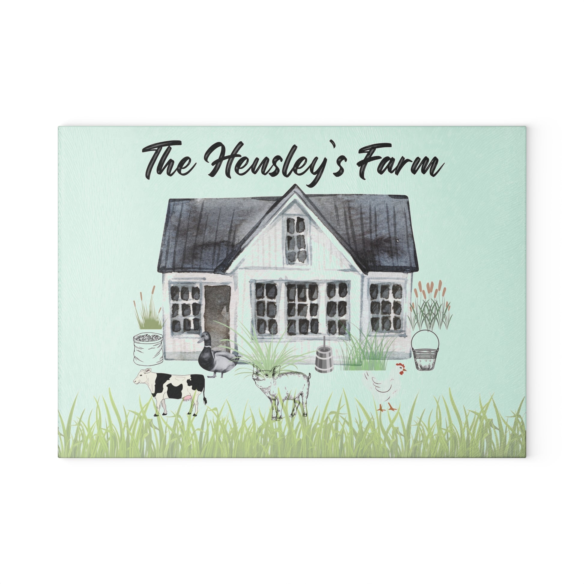 ✔️ Personalized with Your Farm Name – Add your family name or farm name for a unique touch. ✔️ High-Quality Glass Cutting Board – Durable, easy to clean, and resistant to stains and odors. ✔️ Farmhouse-Style Watercolor Design – A charming rustic aesthetic perfect for country kitchens. ✔️ Available in Multiple Sizes – Choose the perfect size for your kitchen needs. 8" x 11" and 11" x 15" ✔️ Non-Slip Rubber Feet – Provides stability and protects countertops.