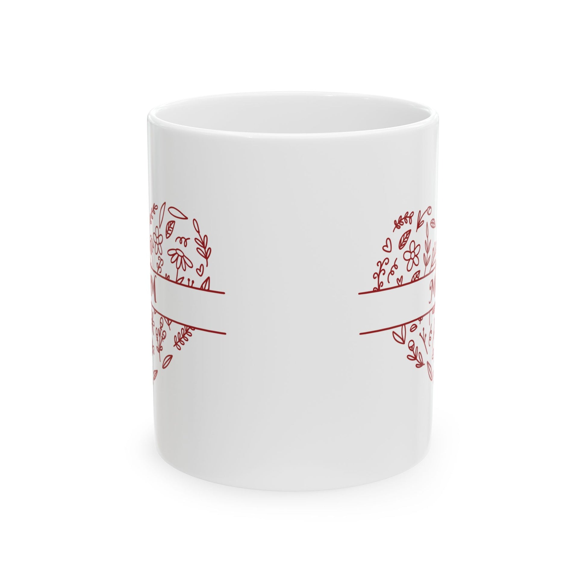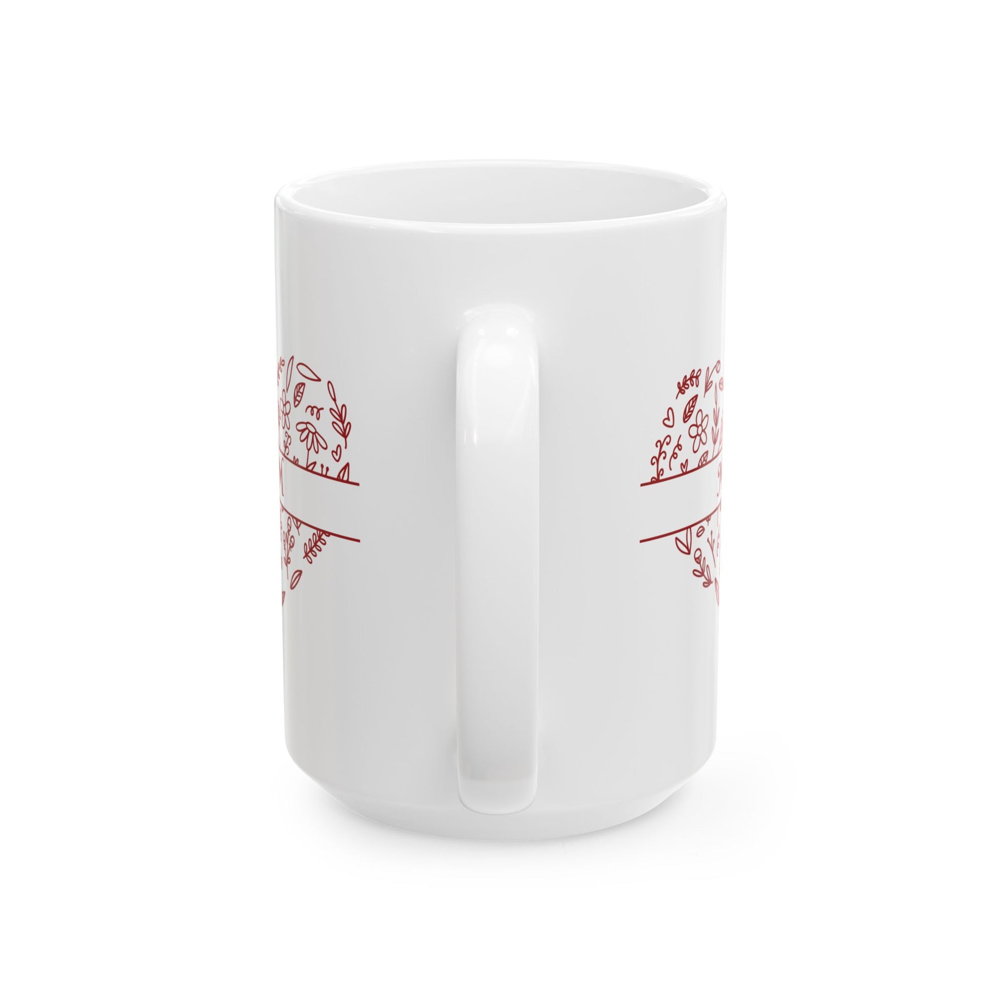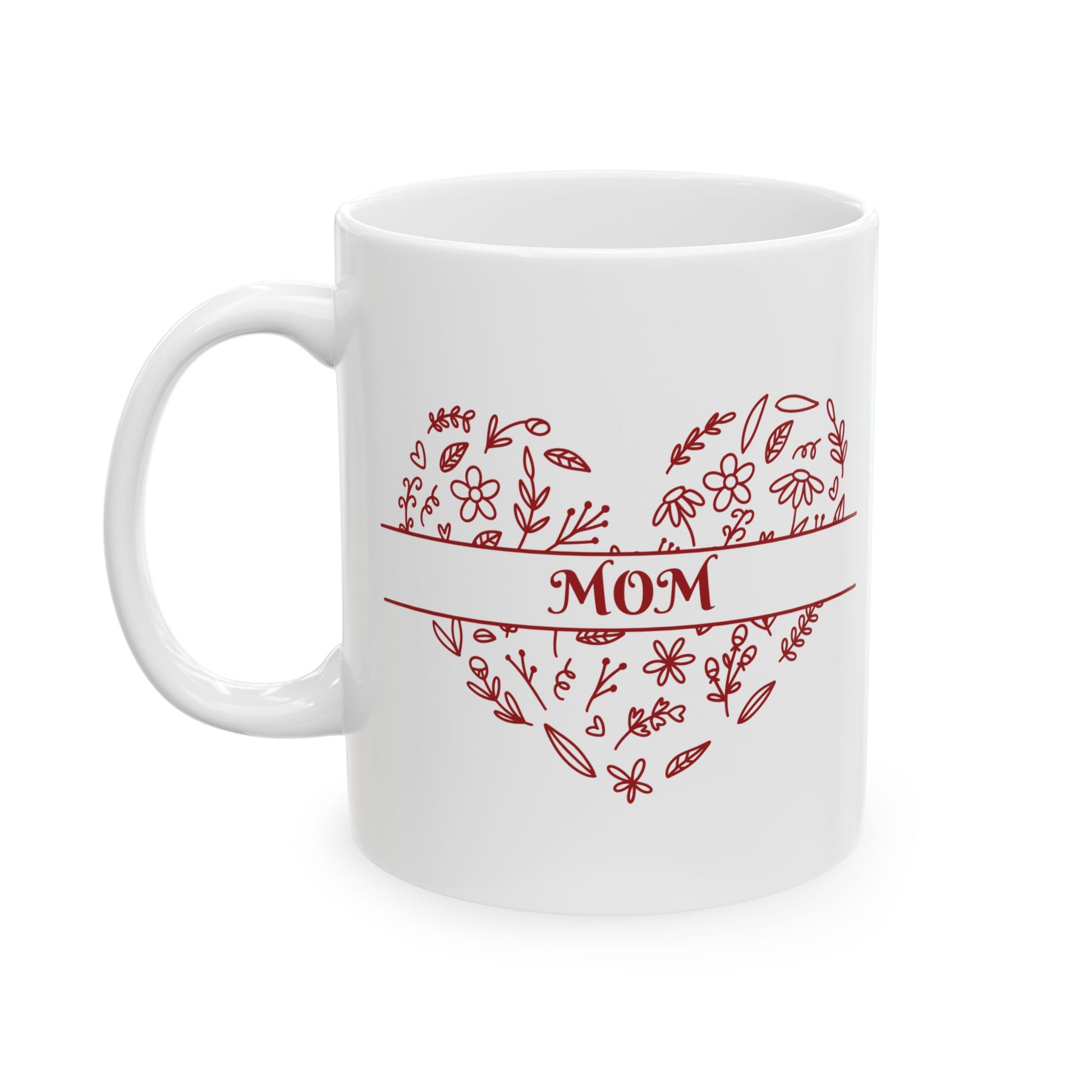 Honor the special woman in your life with this elegant ceramic mug featuring a refined floral heart design and the word "MOM" in classic script. Thoughtfully crafted, this mug combines both beauty and practicality—perfect for enjoying coffee, tea, or any warm beverage.