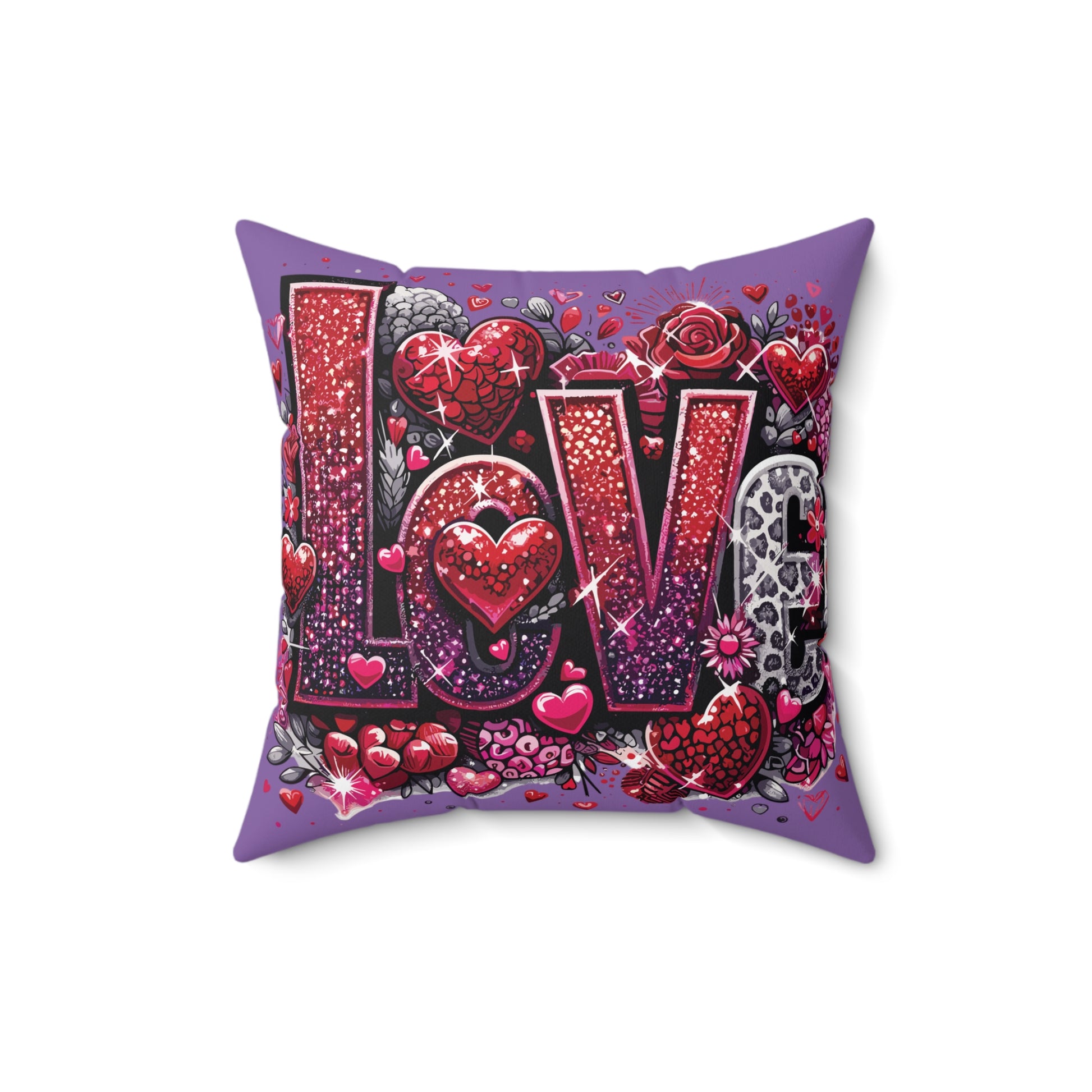 Add a bold and romantic touch to your space with this stunning Love Pillow. Featuring the word LOVE in dazzling detail with sparkling red hearts, roses, and floral accents against a deep black and purple backdrop, this pillow makes a striking centerpiece for any room.