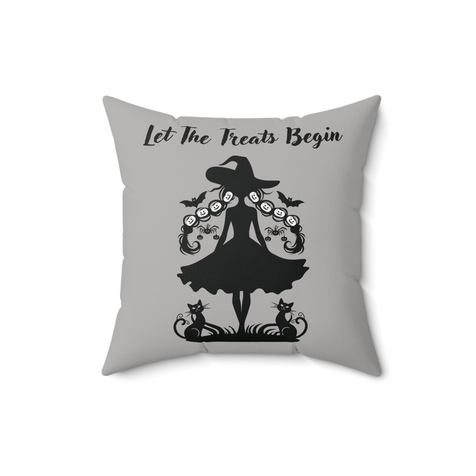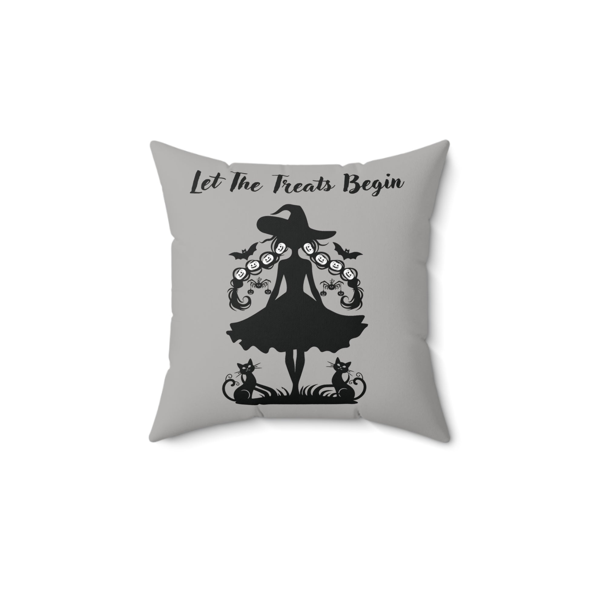 🎃 Halloween Witch Throw Pillow – “Let The Treats Begin”