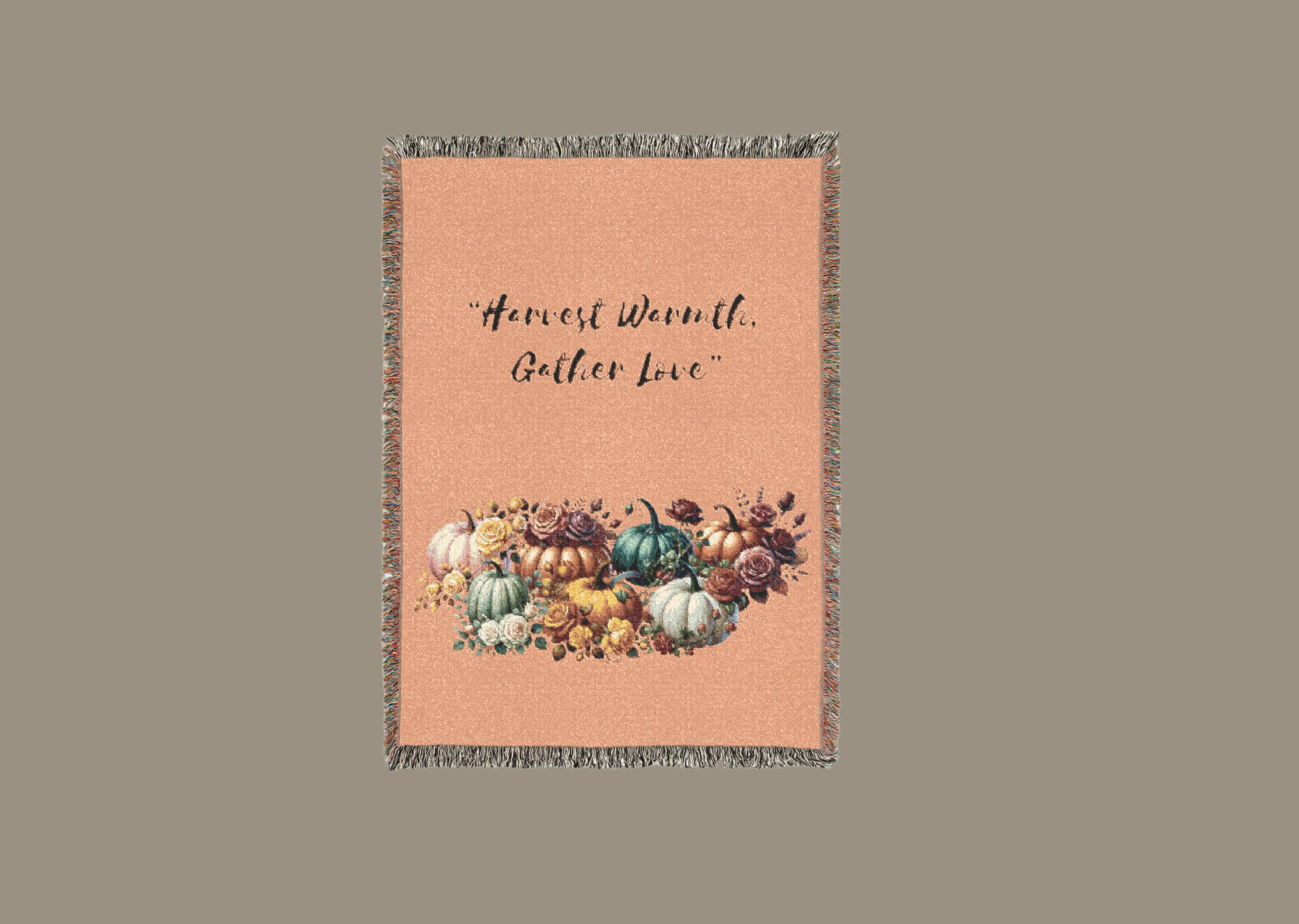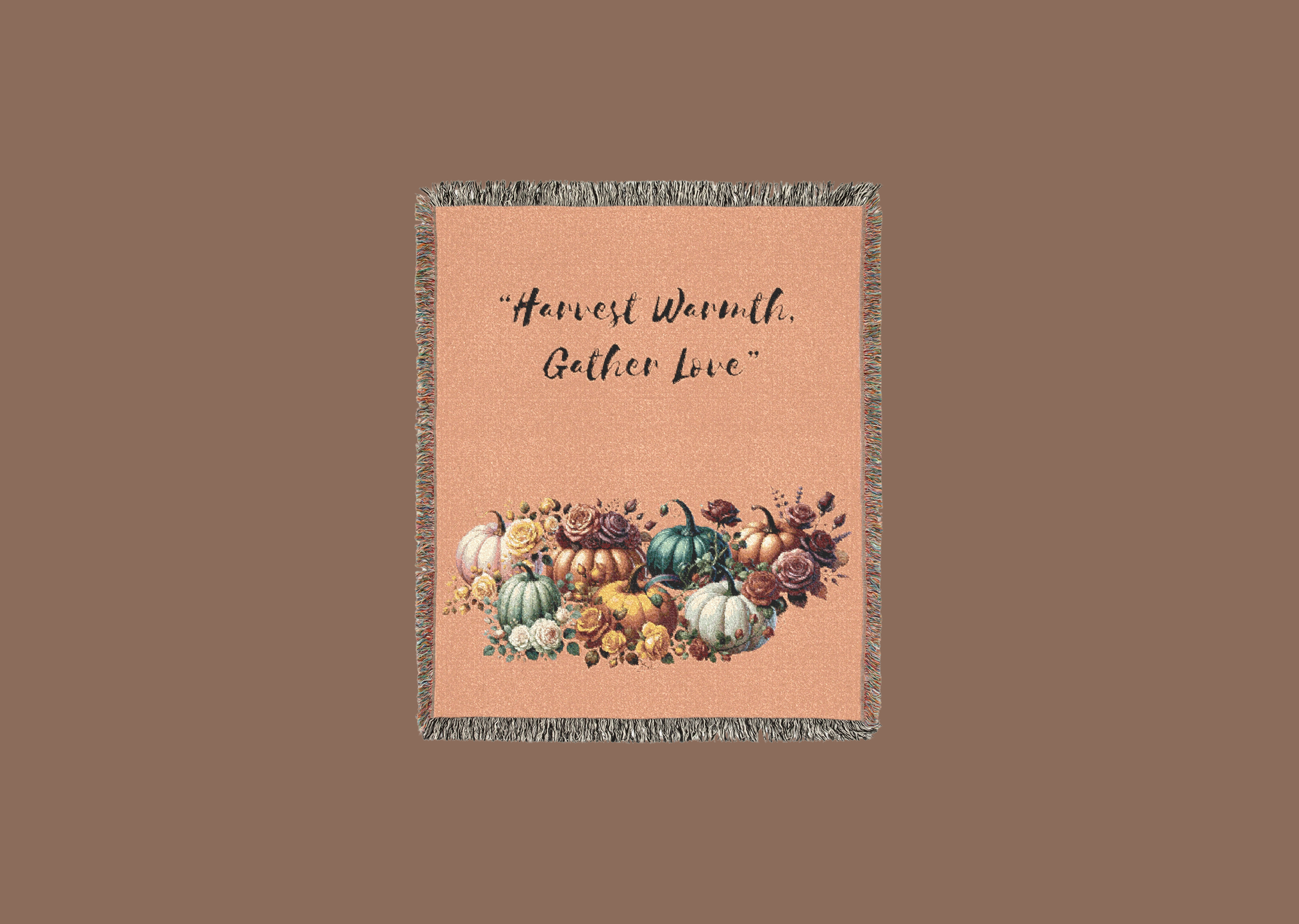 Wrap yourself in the spirit of the season with this “Harvest Warmth, Gather Love” Woven Blanket by Fostenia’s Creations.