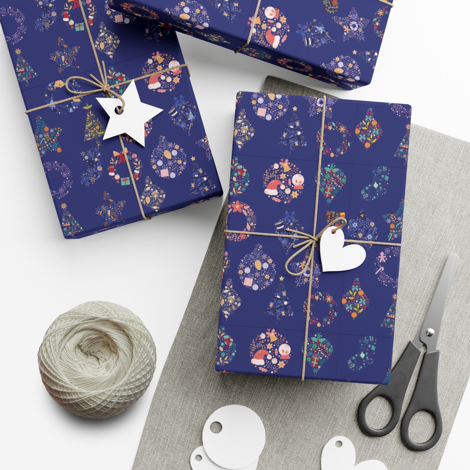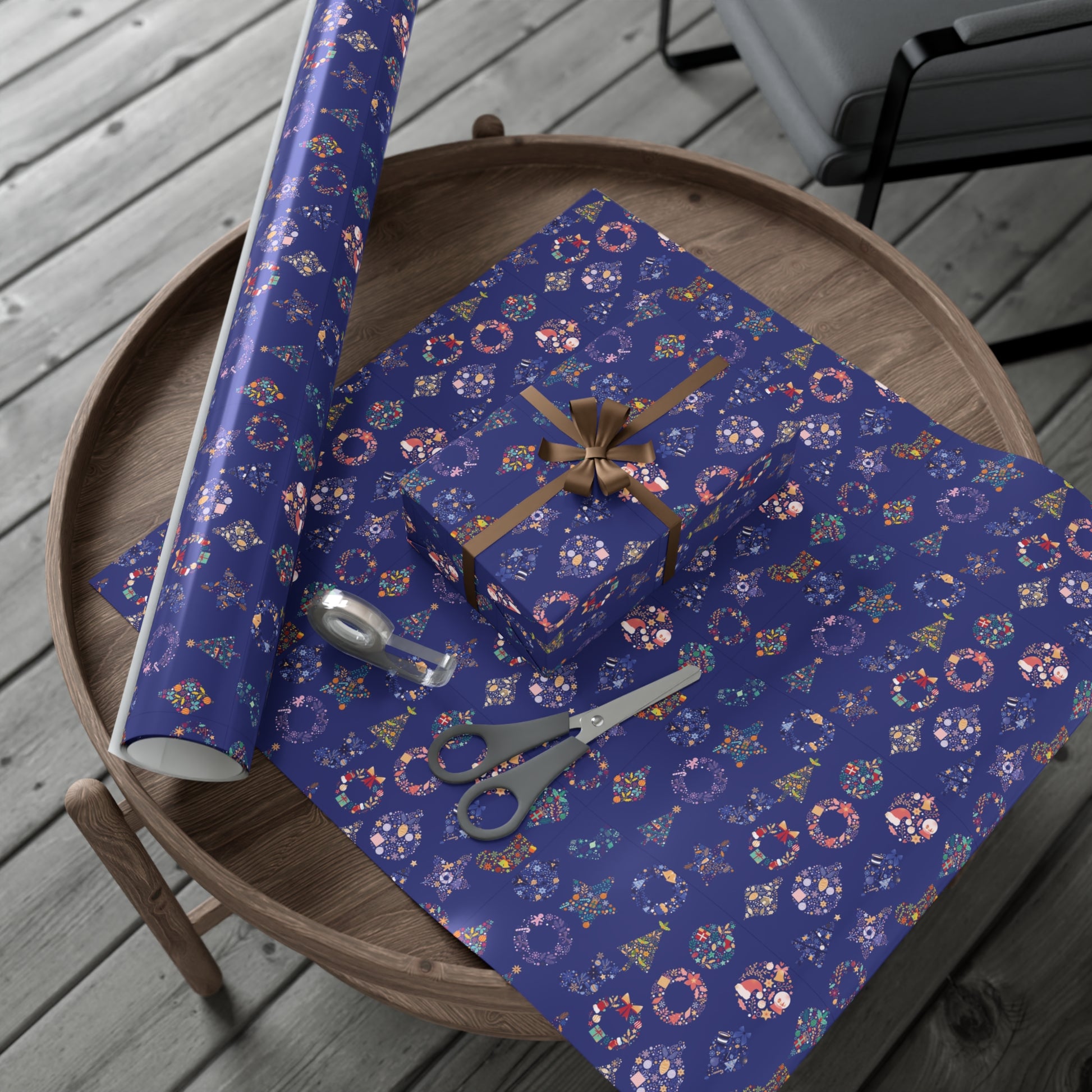 Make your gifts stand out this holiday season with our Patterned Blue Ornament Christmas Wrapping Paper featuring a delightful pattern of Christmas trees, wreaths, stars, and ornaments in charming colors, this wrapping paper brings a perfect mix of holiday joy and elegance. The vibrant blue background adds a wintery touch, making it ideal for wrapping all your Christmas and holiday presents.