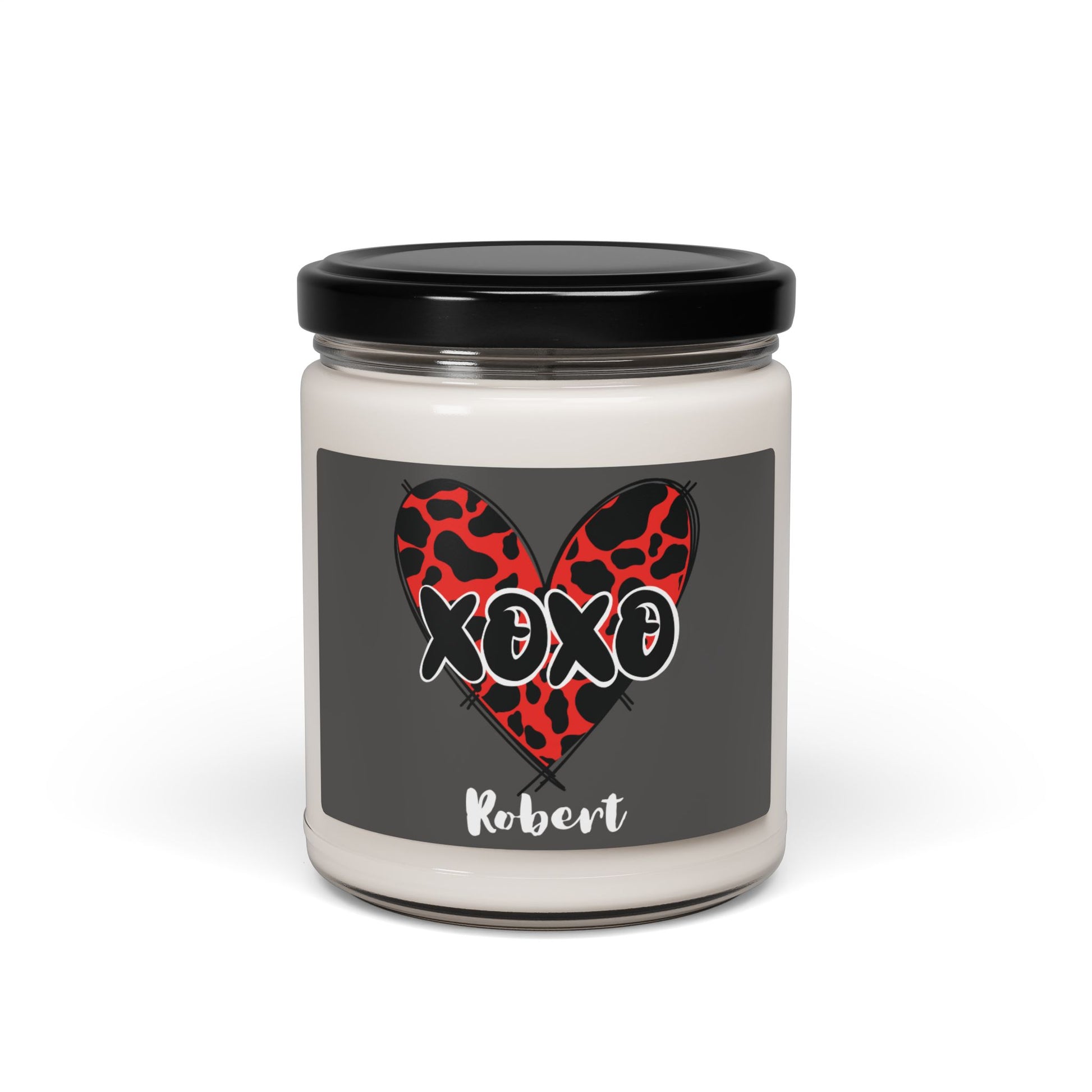 Personalized XOXO Red Leopard Heart Candle Gift for Him Her Valentine Custom Name Jar Candle