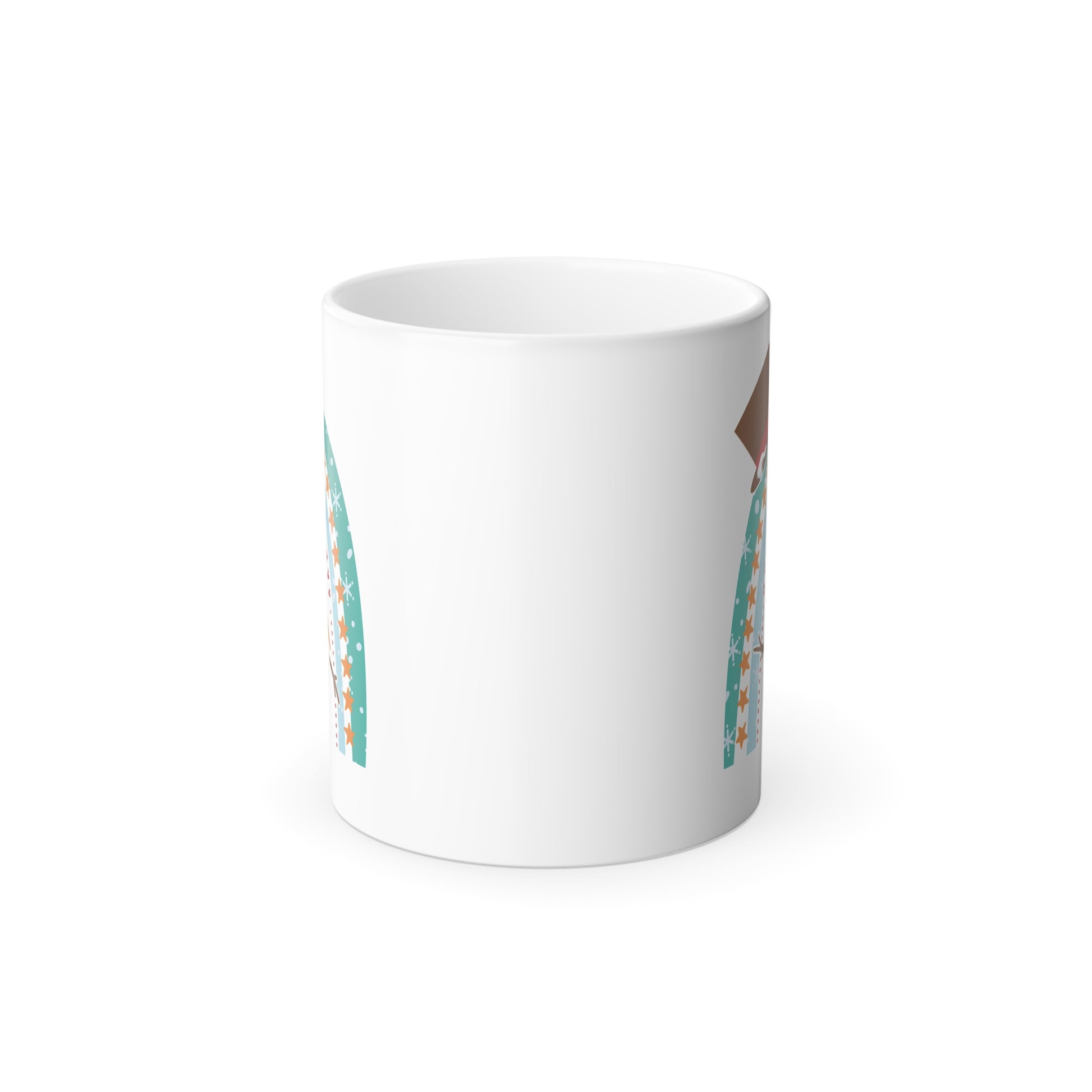 Brighten up your holiday season with this Snowman Morphing Christmas Mug! This black ceramic mug features a whimsical design of a cheerful snowman in a top hat, surrounded by a festive rainbow arc with star and snowflake details. Perfect for sipping hot cocoa by the fireplace or enjoying your morning coffee on a cozy winter morning.