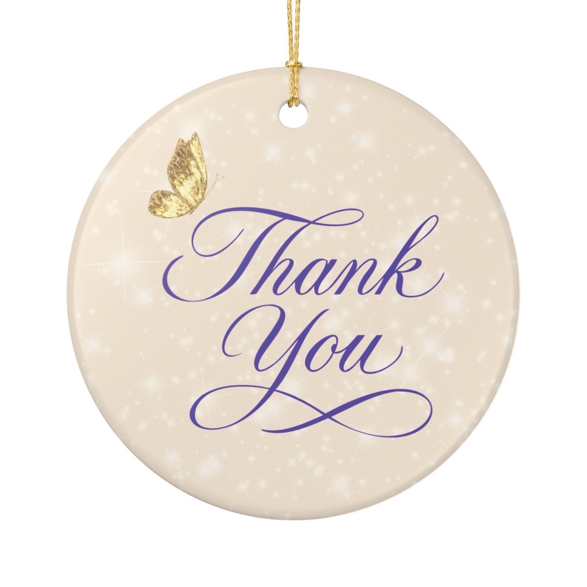 Say “thank you” with beauty and grace. This Thank You Ceramic Ornament is a timeless symbol of appreciation — crafted to warm hearts and celebrate connection. Featuring a graceful script design and golden butterfly accent on a shimmering ivory background, it’s perfect for friends, mentors, or anyone who’s made a difference in your life.