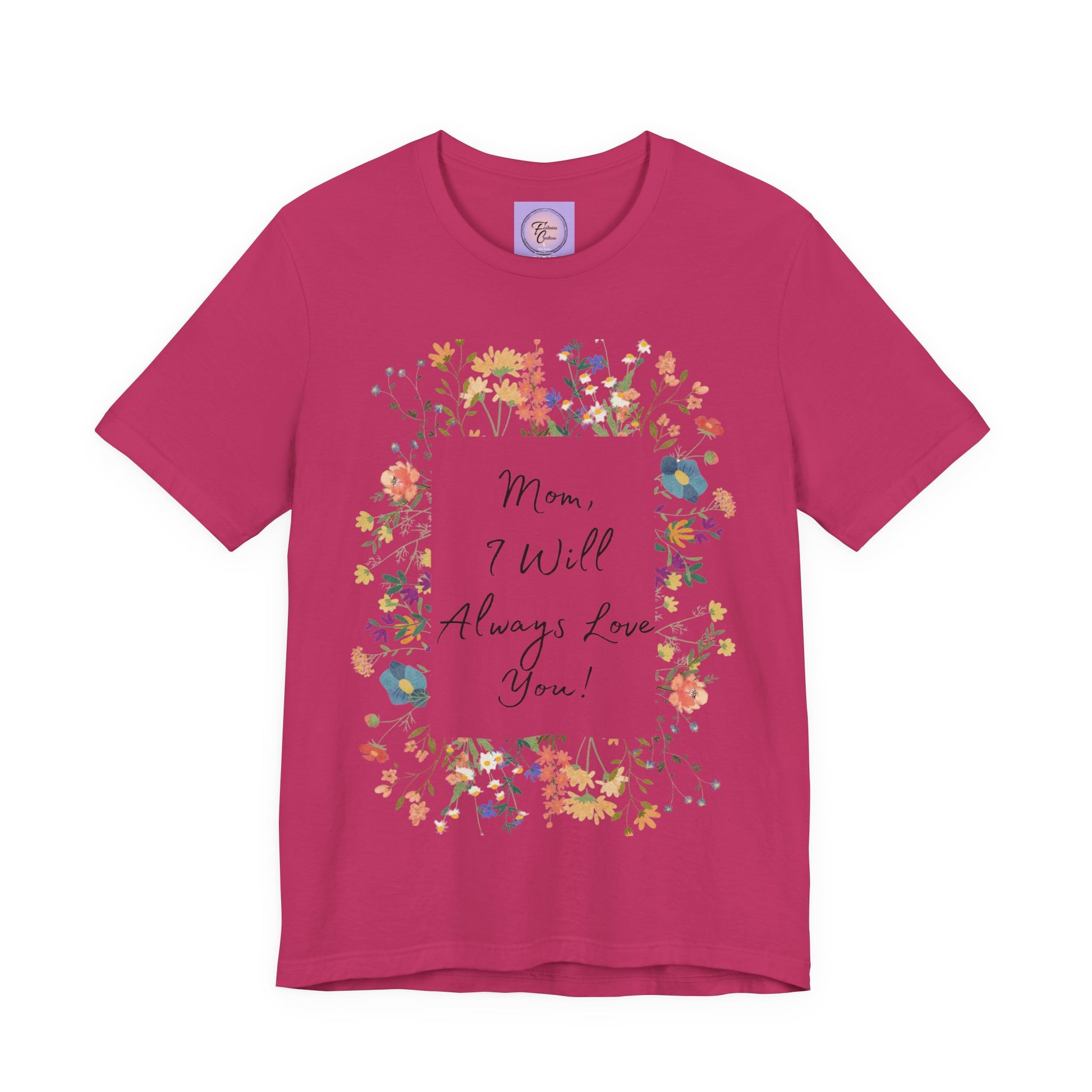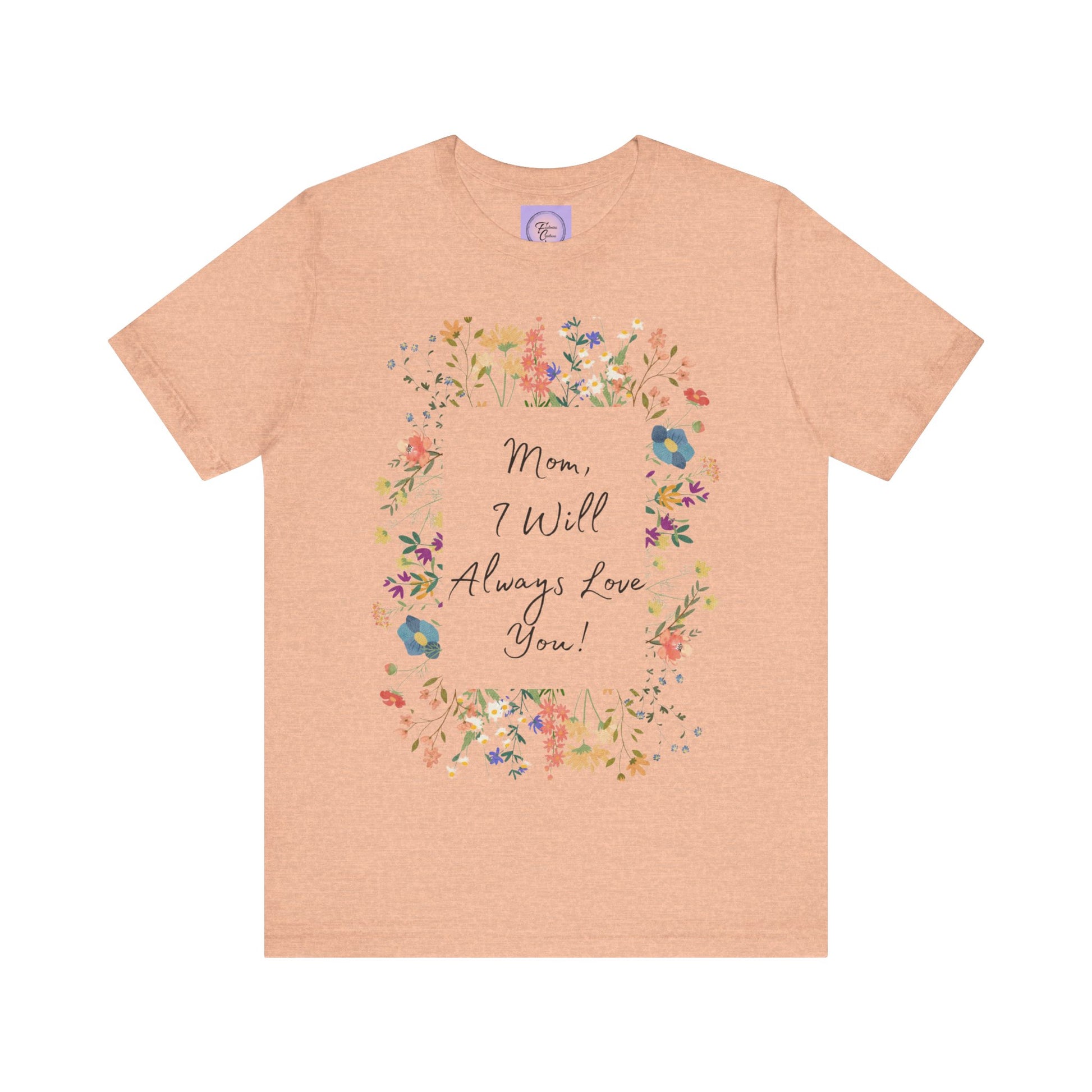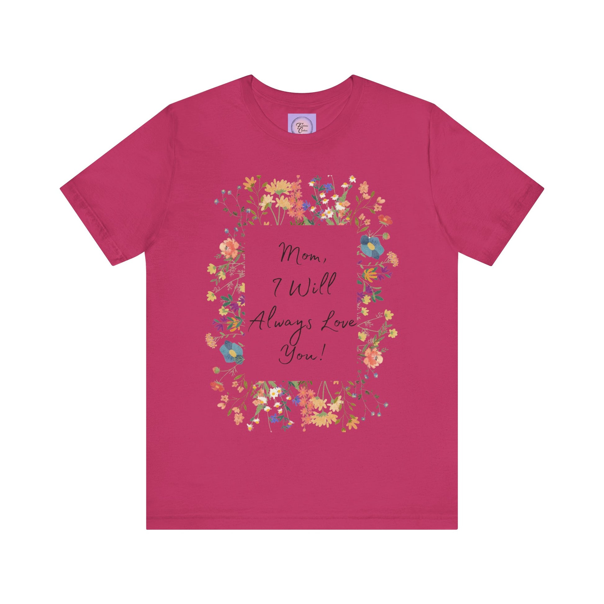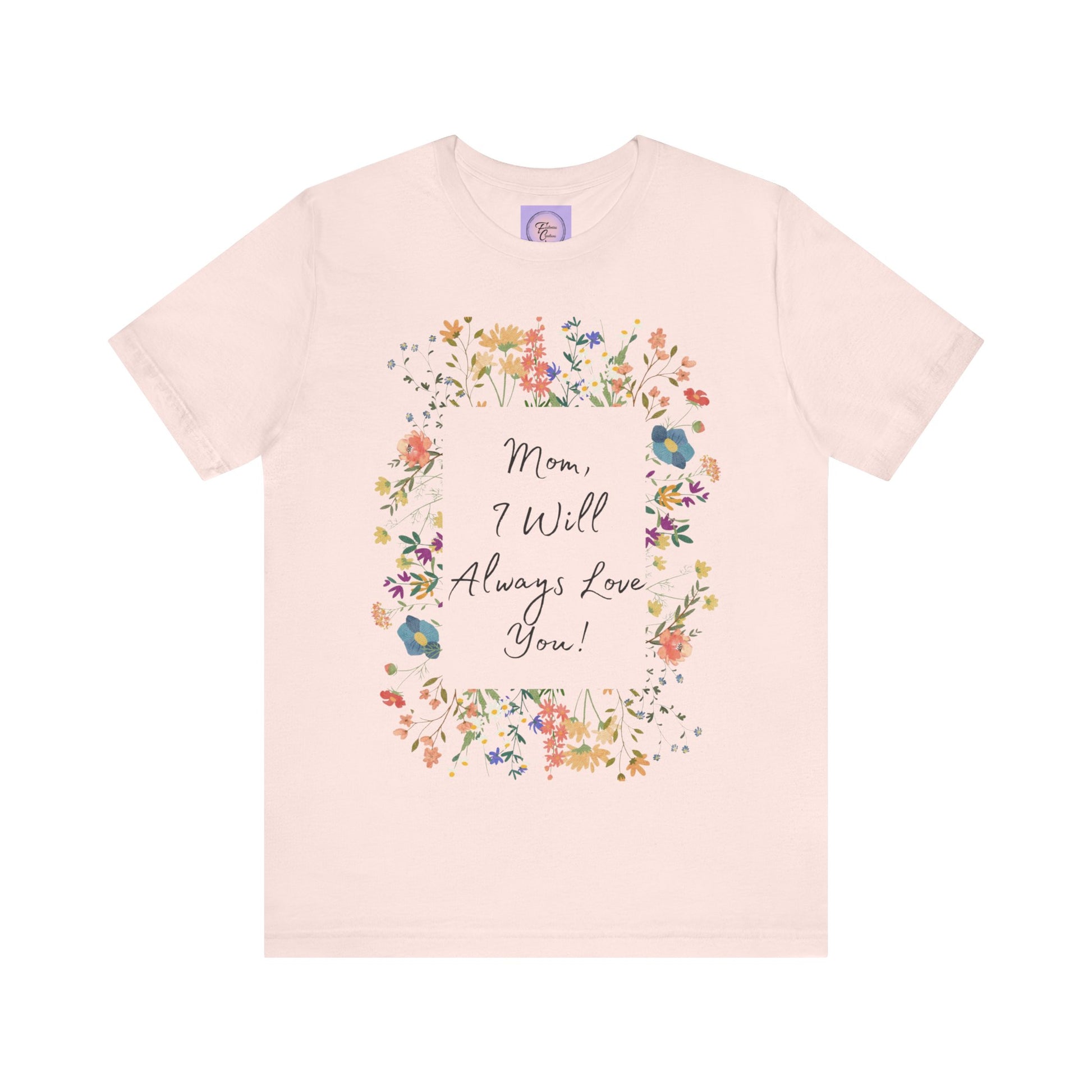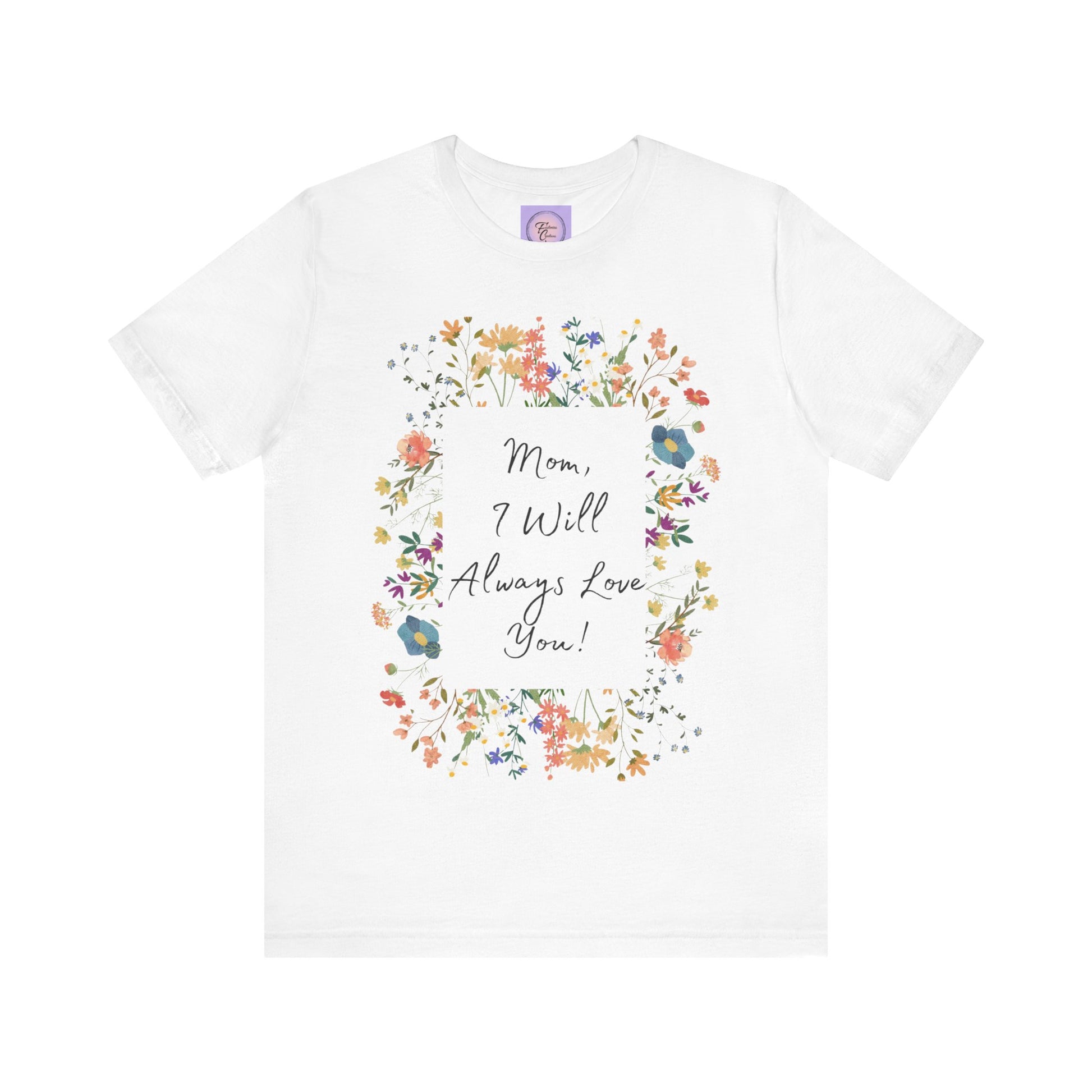 ✨ Why You’ll Love It Heartfelt Message – “Mom, I Will Always Love You” printed with love and care. Floral Artwork – Soft pastel flowers frame the design, adding an elegant touch. Everyday Comfort – Lightweight, breathable cotton blend that’s perfect for daily wear. Gift-Ready – Thoughtful present for Mother’s Day, birthdays, or just to say “I love you.” Versatile Fit – A relaxed unisex style that flatters every shape and size.