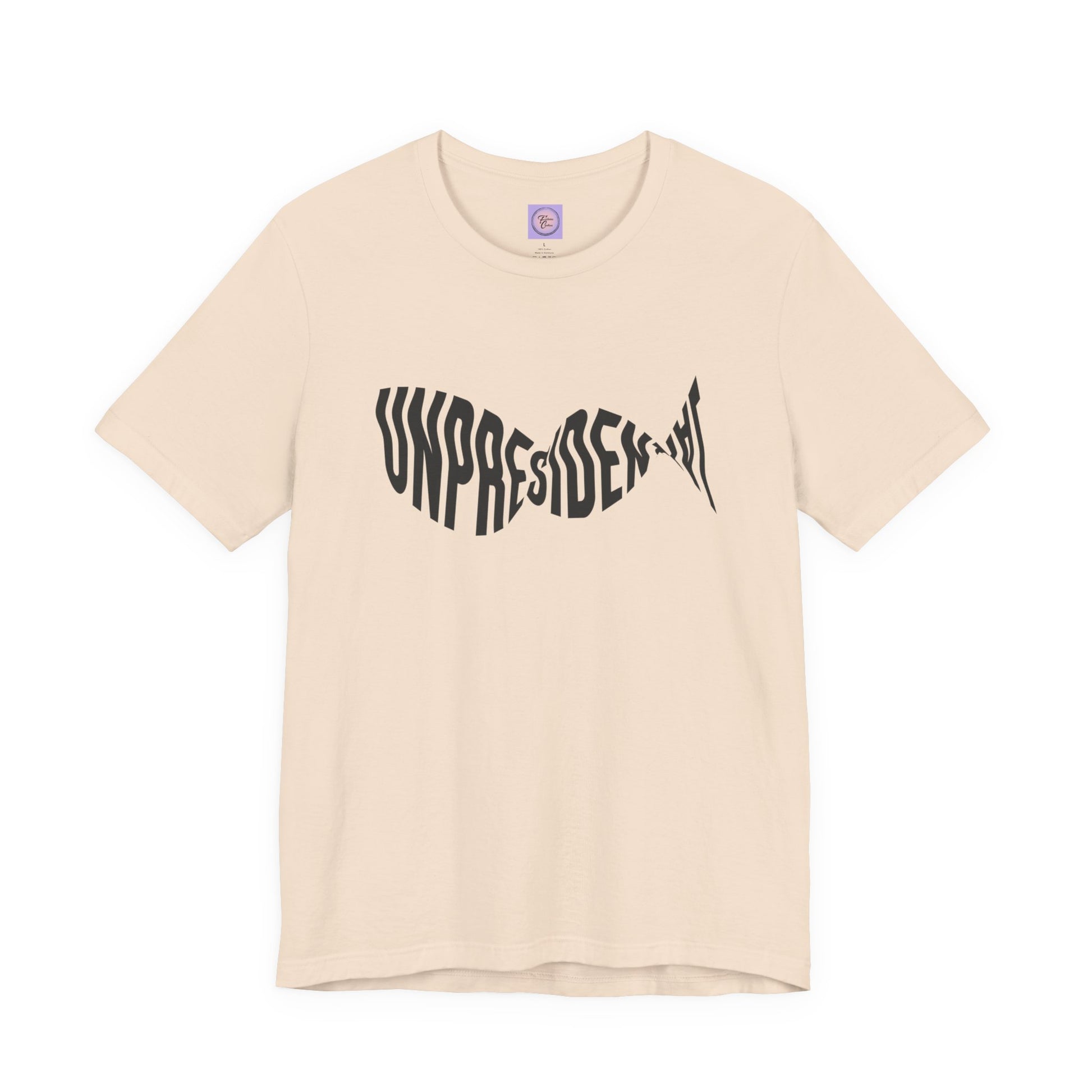 Make waves with our "Unpresedential" t-shirt, featuring a clever wave-shaped design that spells out "Unpresedential." This bold graphic tee is perfect for those who want to make a political statement with style. The unique wave form adds a dynamic visual element to the shirt, making it a standout piece that expresses both individuality and a message.