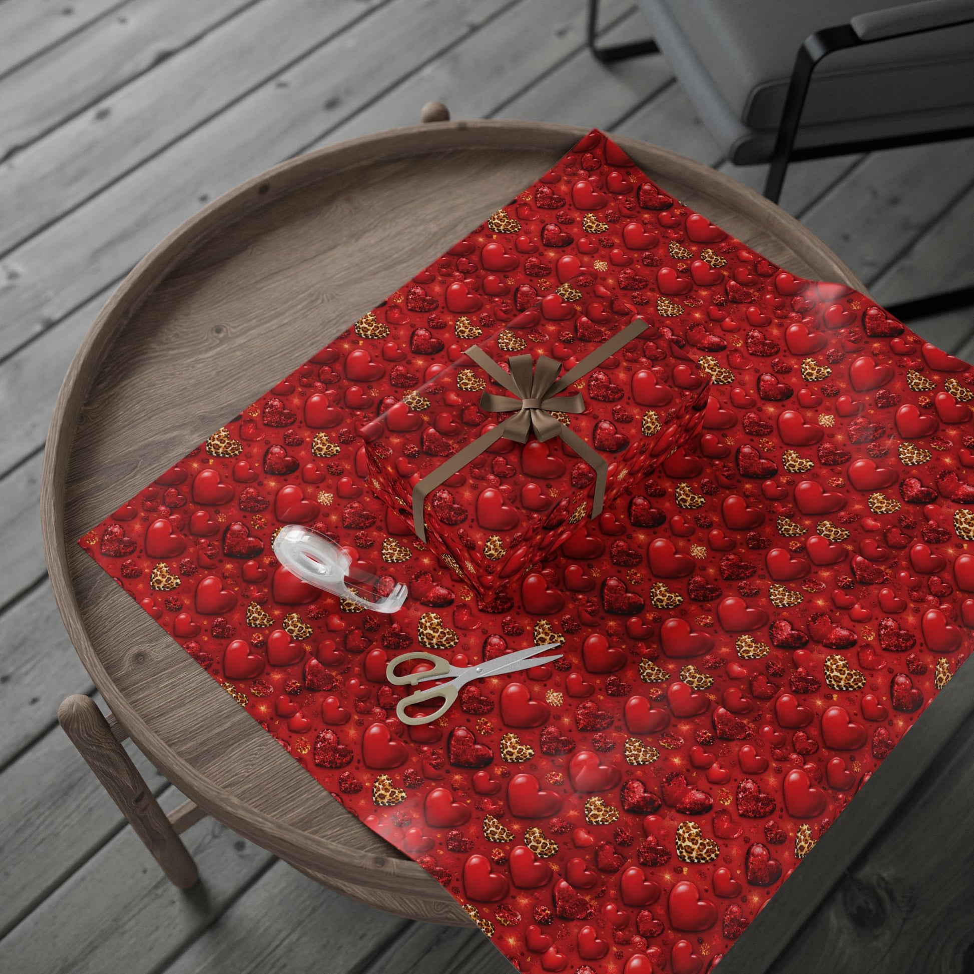 Valentine Heart Leopard Wrapping Paper — Romantic Animal Print Gift Wrap