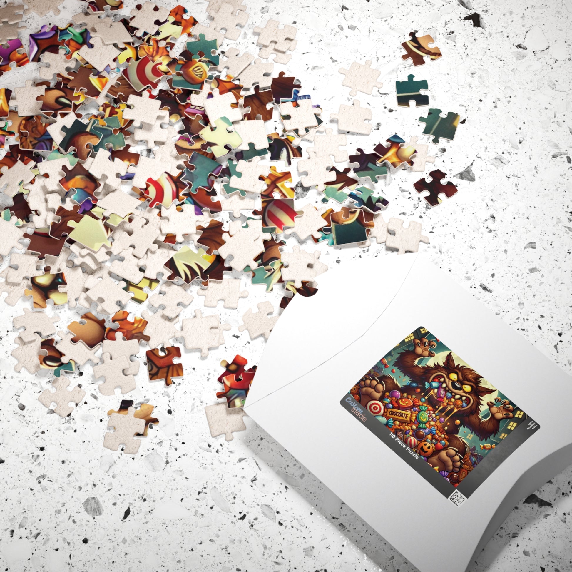 Werewolf Cartoon Puzzle, Monster Candy Puzzle, Werewolf Halloween Puzzle, Scary Fun Puzzle, Spooky Monster Jigsaw, Halloween Candy Puzzle